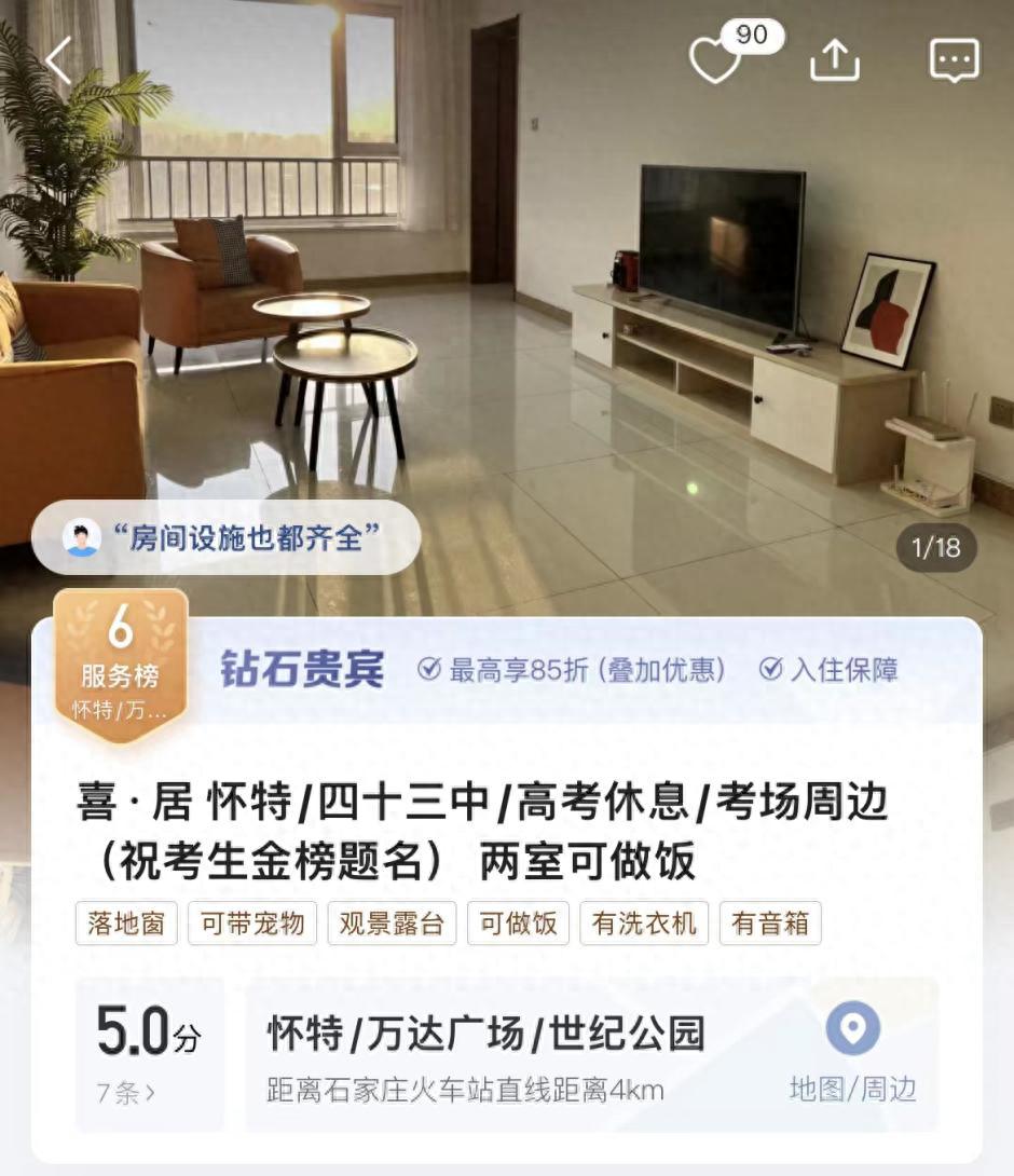正在拓展的是家长预订思路,不少人挑的是距离考场更近得以洗衣做饭的民宿去陪考。据途家民宿数据显示,截至6月5日,入住时间为6月7日至9日的考点周边民宿搜索量,环比4月增长超8倍。提前两周着手预订民宿的家长数量最多,衡水民宿预订量环比上月增长12倍。更受欢迎的是可以洗衣做饭且生活用品齐全还配备无线WIFI以及24小时热水的民宿,两居室占比超过七成成了主力房型。