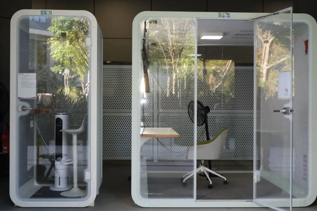 有部分楼层设置了“生活服务间”,里面提供冰箱、微波炉、医药箱、吹风机以及熨斗等物品供免费借用。要是学生感到疲惫了,那么还能够到走廊尽头的观光区去泡杯茶,进而欣赏户外的风景。另外,宿舍周边配备了隔音舱、朗读室以及琴房,以此尽可能满足学生多样化的学习和生活需求。